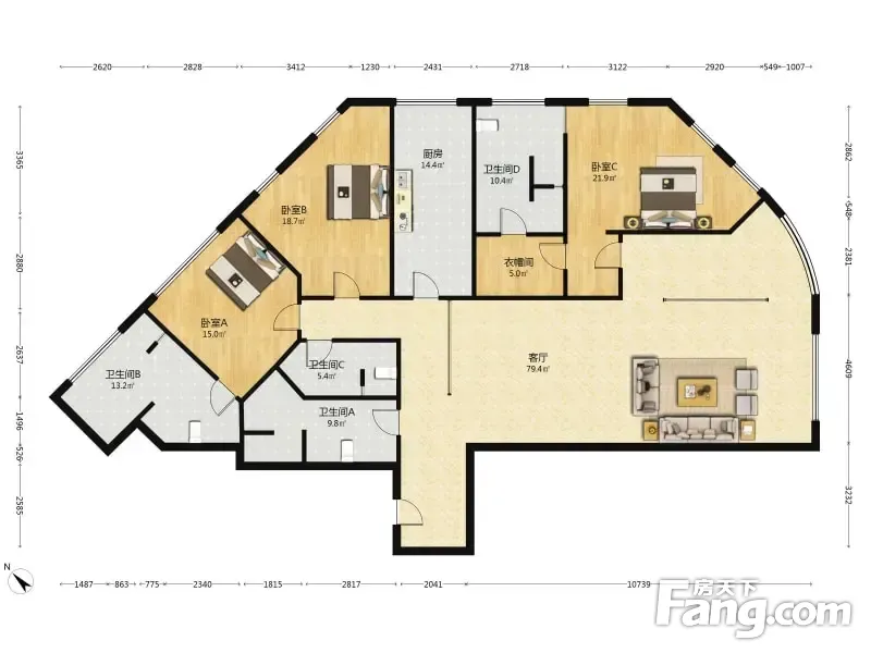 房屋拥有相对宽松的尺寸,布局通透,动静分离,设计豪华