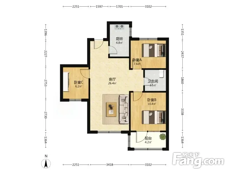 3室2厅1卫