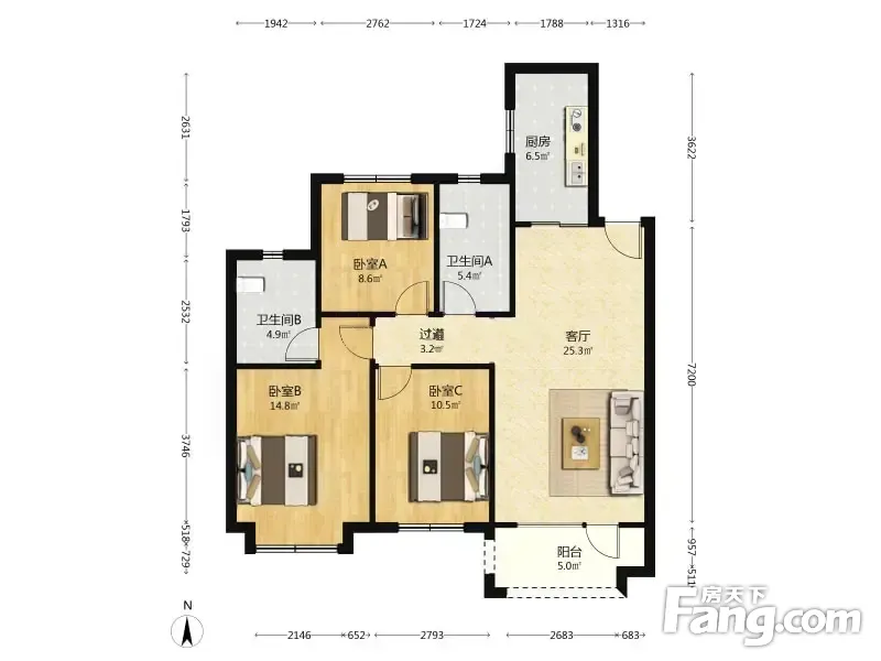 3室2厅1卫