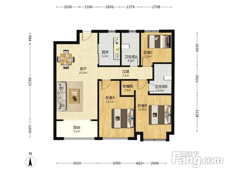 3室2厅1卫
