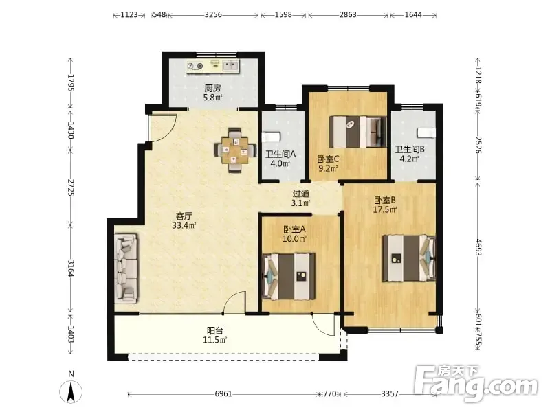 3室2厅1卫
