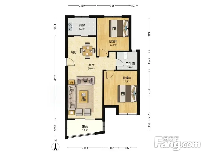 户型齐全,主打户型方正,明卫,客厅朝南二居
