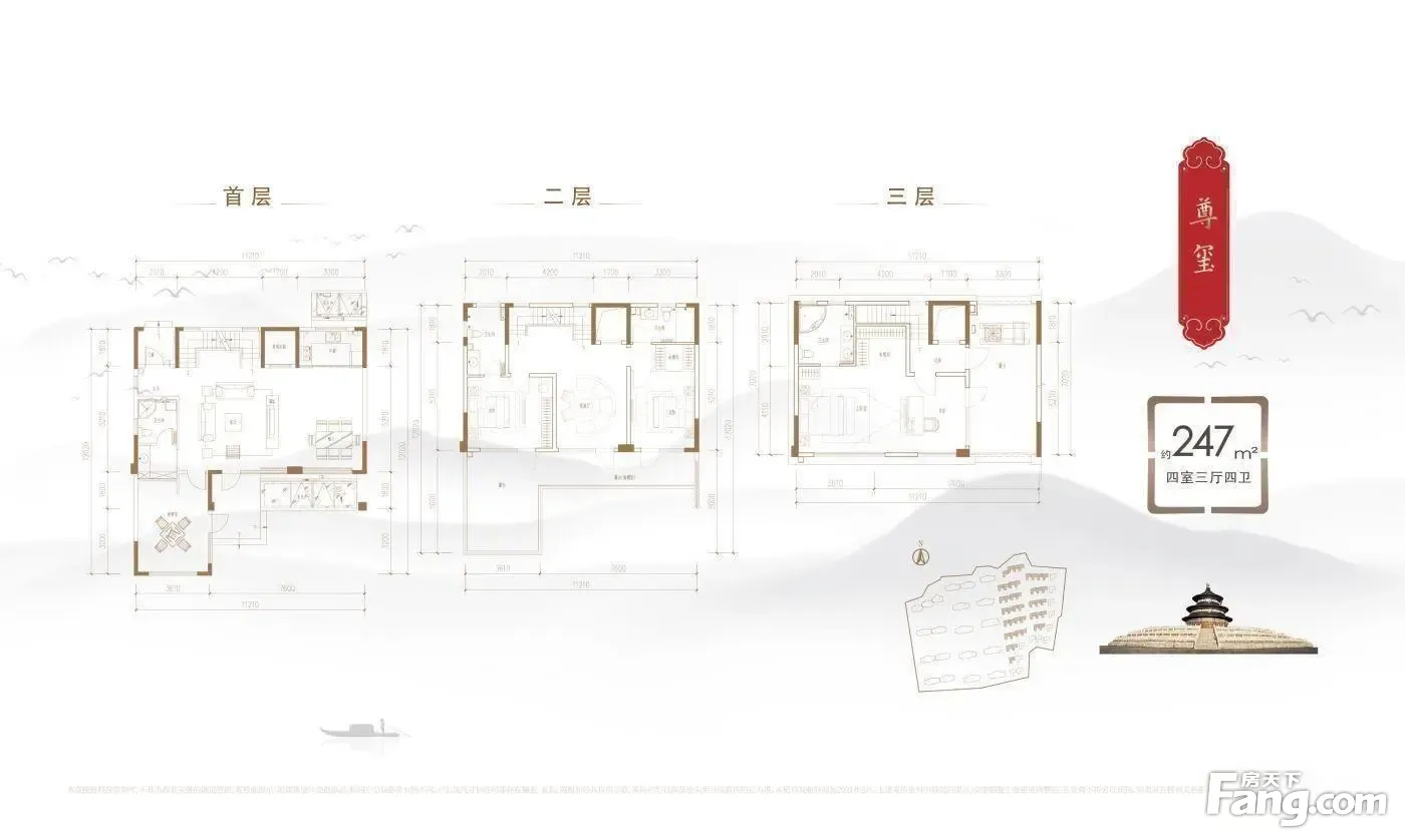 【一环三轴四坊五礼六制】 【四进 锻造 世家仪仗】 一进登府:迎宾平台祥瑞浮雕、黑松列阵、国玺灯柱、厚重门庭。 二进望府:穿过厅堂, 流水,飞虹瀑布,与山海遥相呼应。 三进遇府: 纯种树木栽种,桥亭点缀,左侧登高步梯,右侧览景长廊。 四进赏府:至观澜亭,”一观府院,众澜山海“,环顾眺望整个园区风景。
