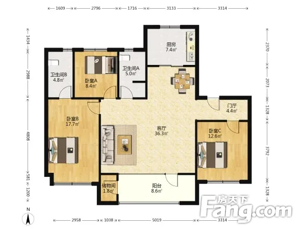 户型齐全,主打南北通透,采光充足三居