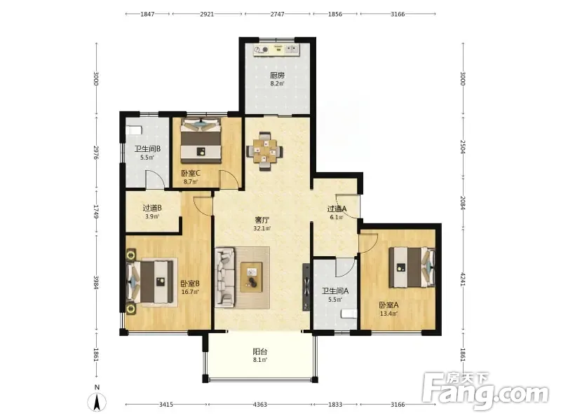 3室2厅1卫