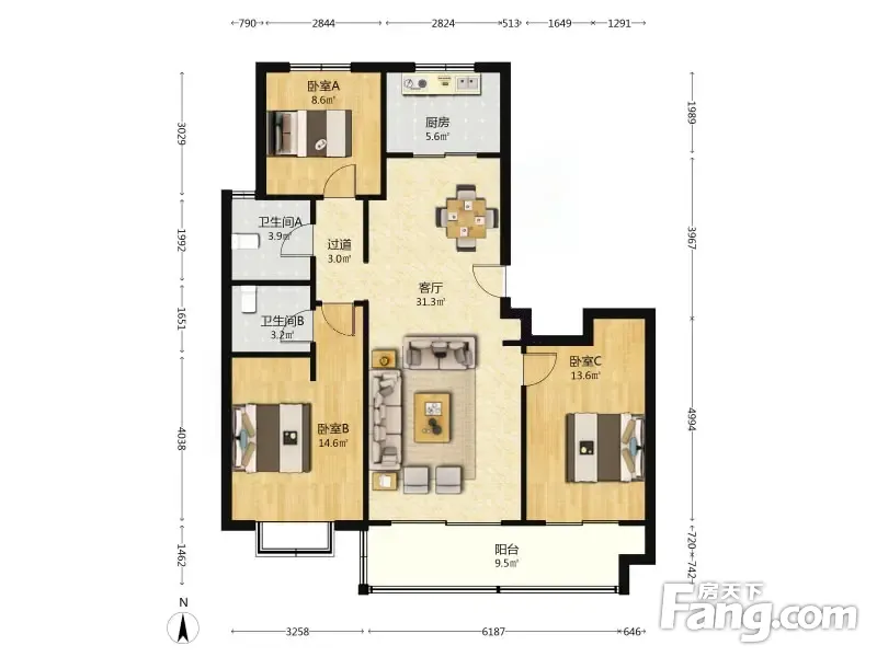 3室2厅1卫