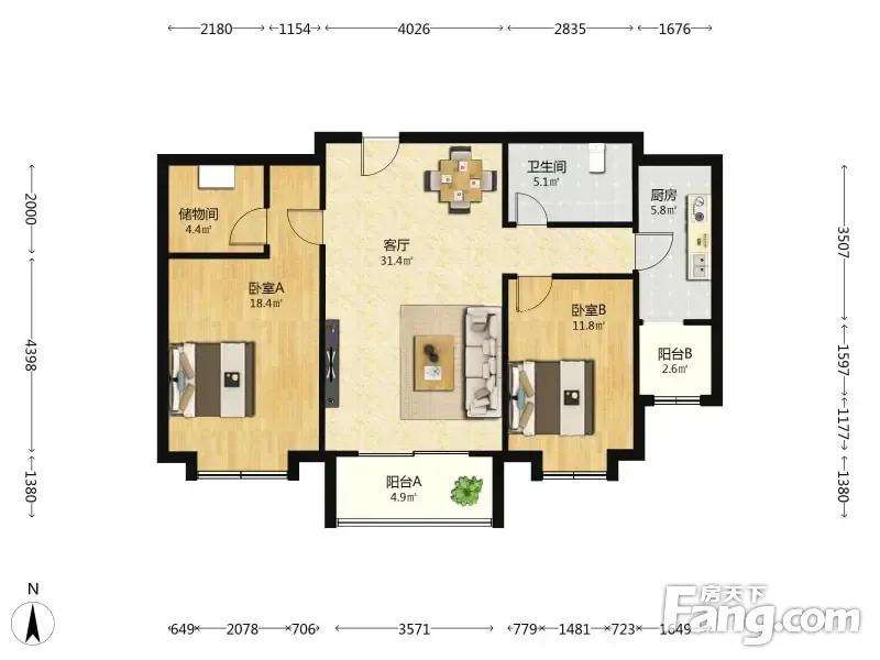 瑞源名嘉汇 2室1厅 113.11平