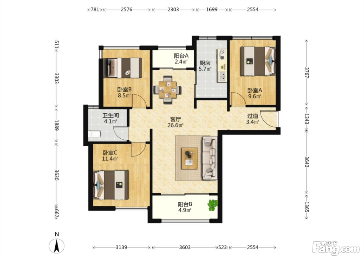 户型齐全,主打户型方正,明厨,主卧朝南三居