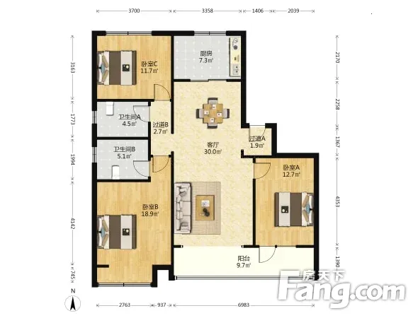 户型齐全,主打南北通透,全明格局三居