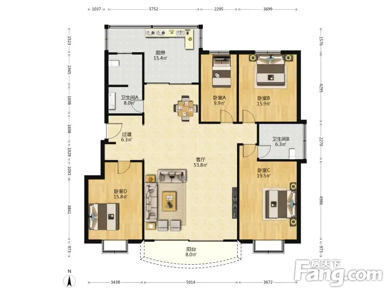 鲁信长乐花园 4室2厅 188.21平