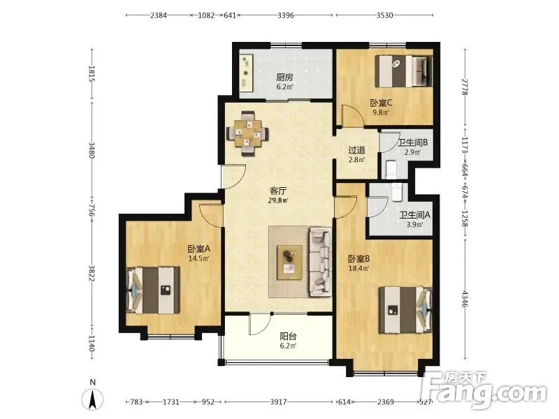 3室3厅1卫