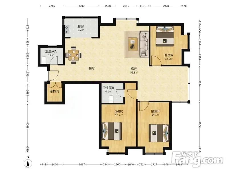 3室2厅1卫