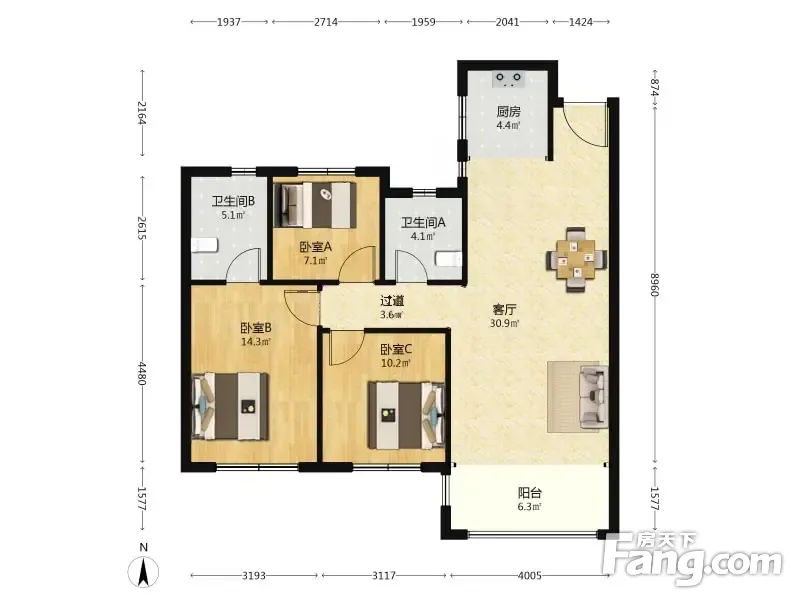 3室2厅1卫