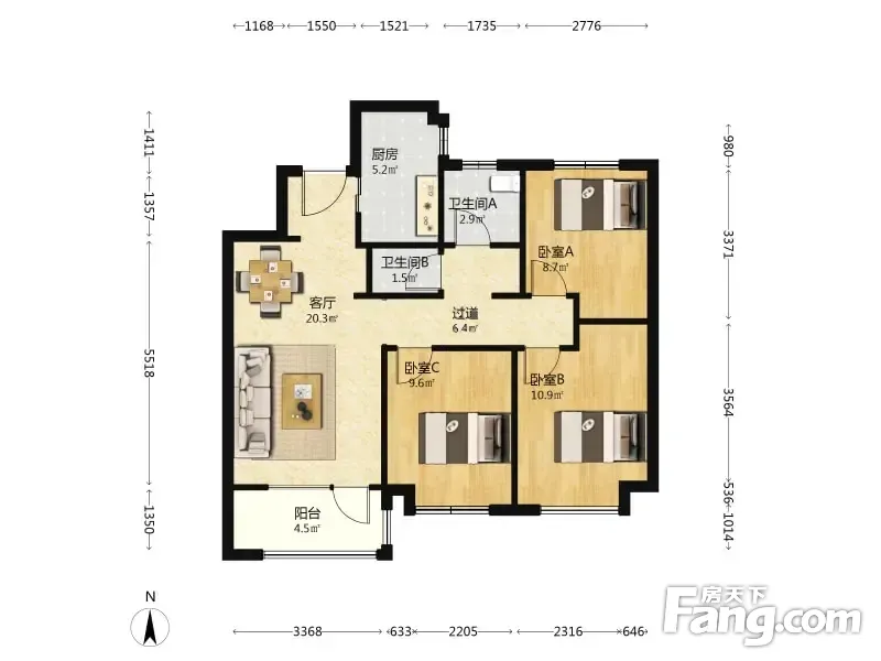 3室2厅1卫