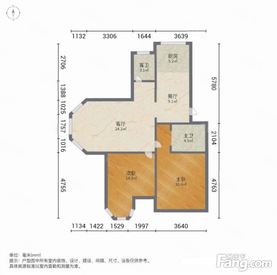 户型齐全,主打户型方正,明厨,明卫,客厅朝南,全明格局二居
