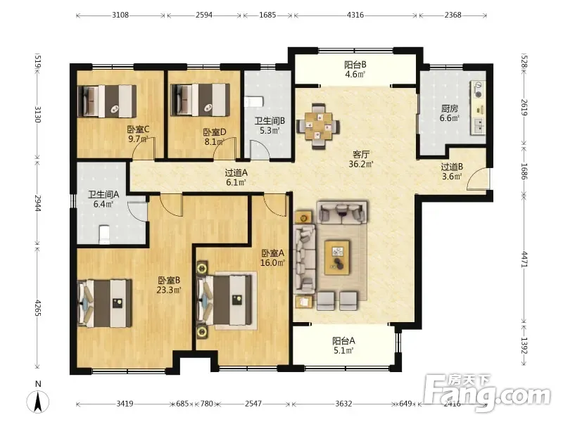 房屋拥有相对宽松的尺寸,布局通透,动静分离,设计豪华