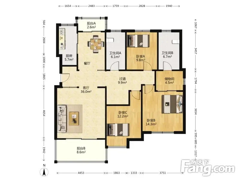 户型齐全,主打明卫,双卧朝南,主卧朝南三居