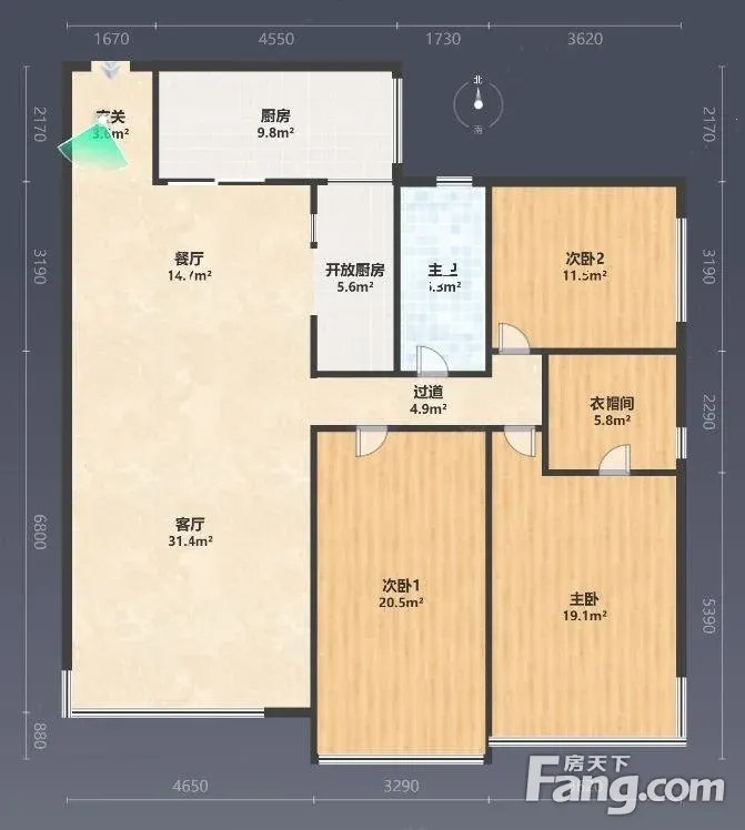 户型齐全,主打南北通透,主卧带卫,户型方正,主卧朝南,带衣帽间,全明格局三居