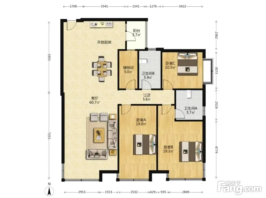 户型齐全,主打南北通透,主卧带卫,户型方正,主卧朝南,带衣帽间,全明格局三居