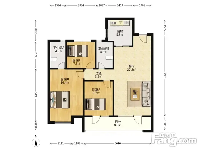 户型齐全,主打南北通透,全明格局,户型方正四居