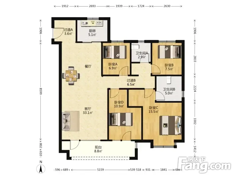 户型齐全,主打南北通透,全明格局四居