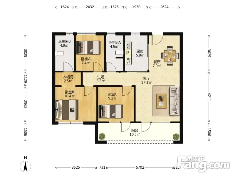 户型齐全,主打南北通透,全明格局三居