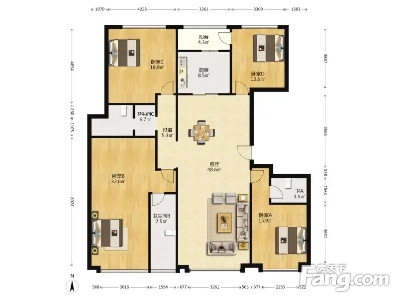户型齐全,主打南北通透,户型方正五居