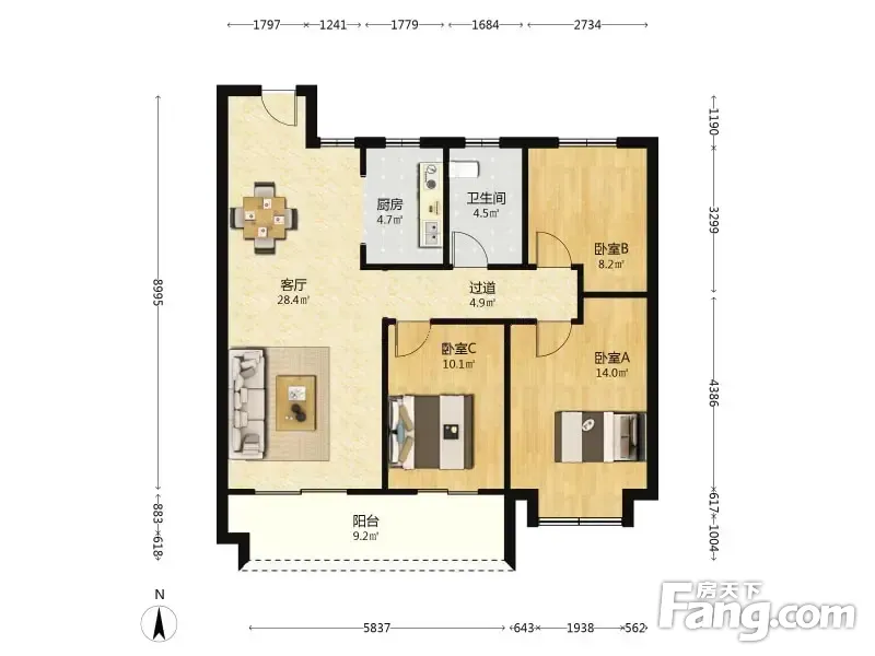 户型齐全,主打南北通透,客厅朝南四居