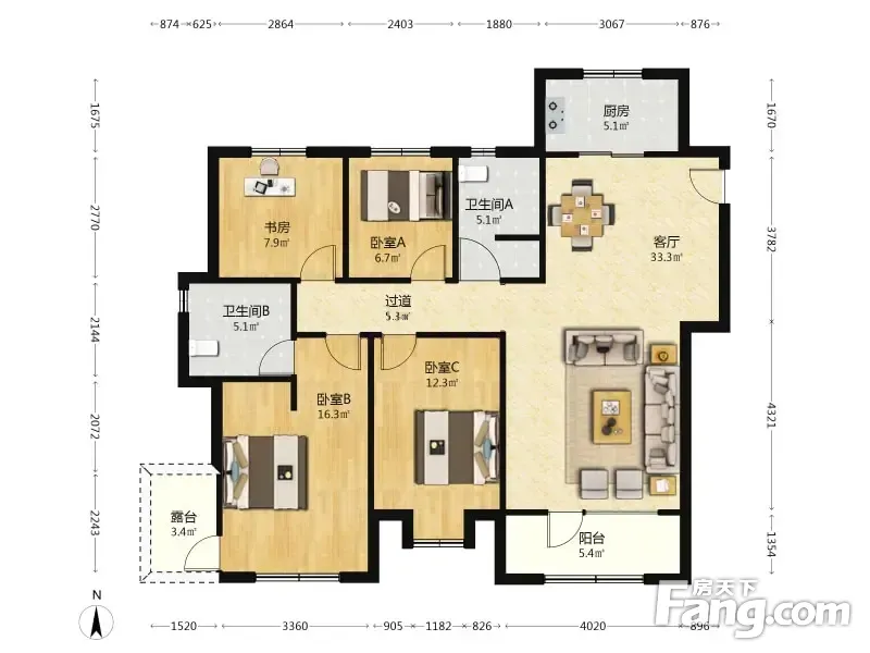 房屋拥有相对宽松的尺寸,布局通透,动静分离,设计豪华