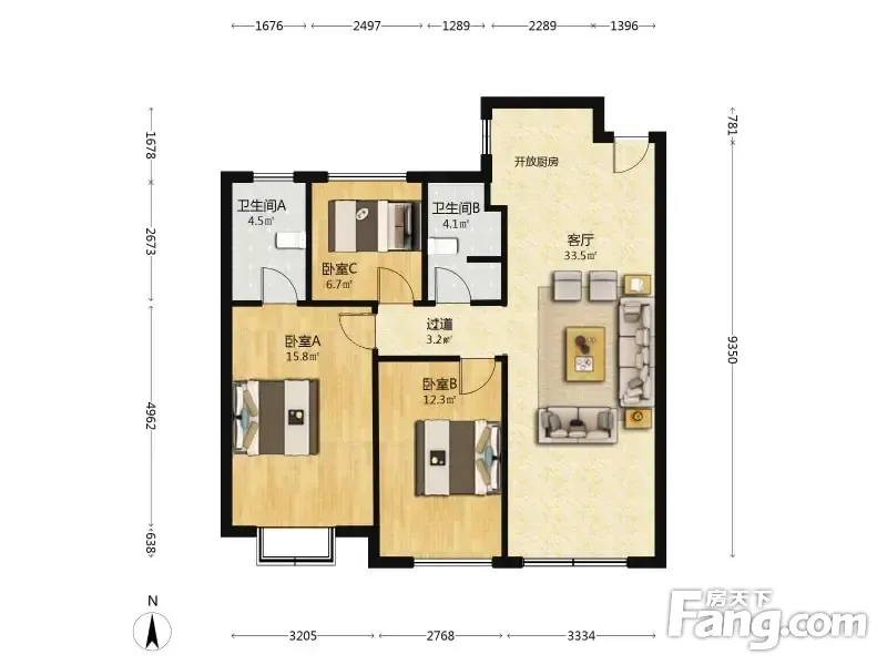 户型齐全,主打南北通透,客厅朝南三居