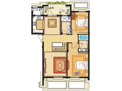绿城小高层 精装修 大套二 双南卧南客厅