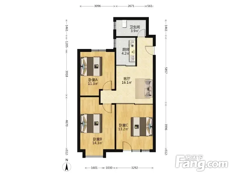 户型齐全,主打南北通透,户型方正,客厅朝南,主卧朝南二居