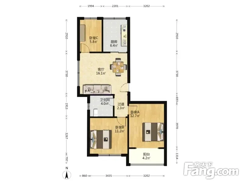 户型齐全,主打户型方正,明厨,主卧朝南二居