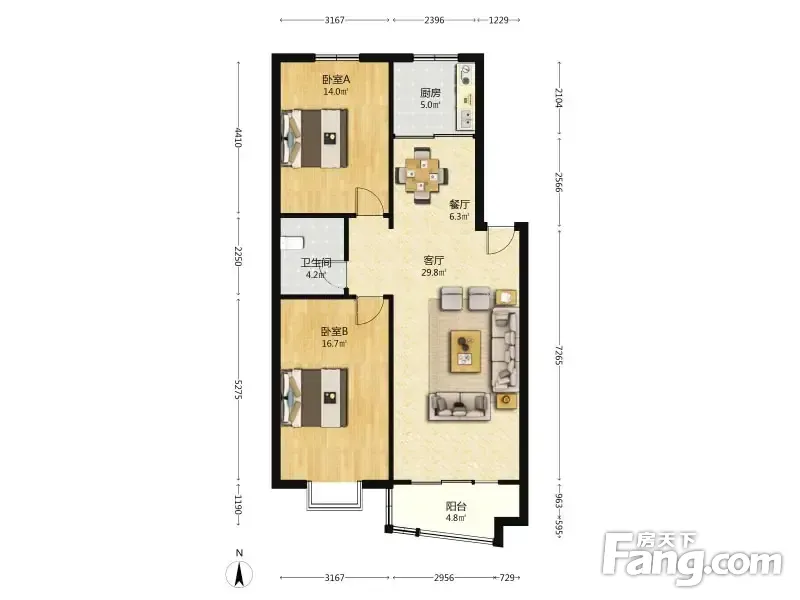 户型齐全,主打户型方正,客厅朝南,双卧朝南,主卧朝南二居