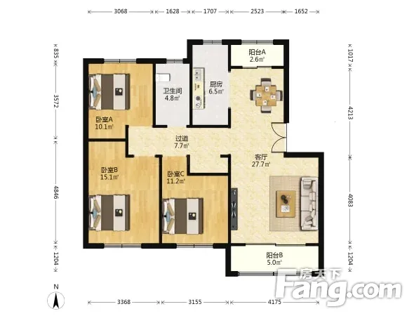 户型齐全,主打户型方正,明厨,明卫,客厅朝南,主卧朝南三居