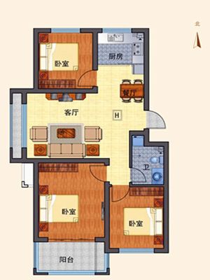 户型齐全,主打南北通透,主卧朝南,卧室带阳台二居