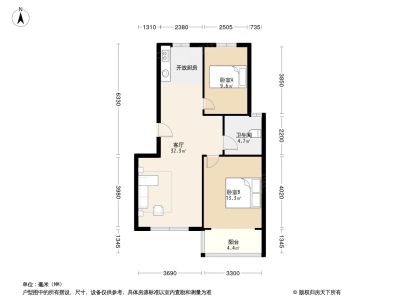 户型齐全,主打明厨,客厅朝南,双卧朝南二居