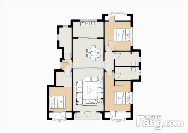 户型齐全,主打主卧带卫,户型方正,客厅朝南,主卧朝南三居