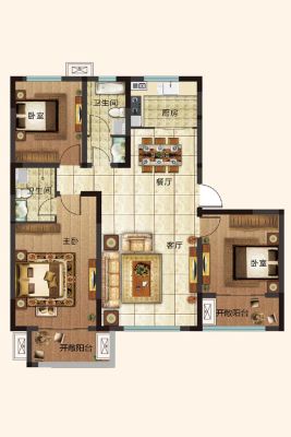 户型齐全,主打明卫,明厨,主卧朝南三居