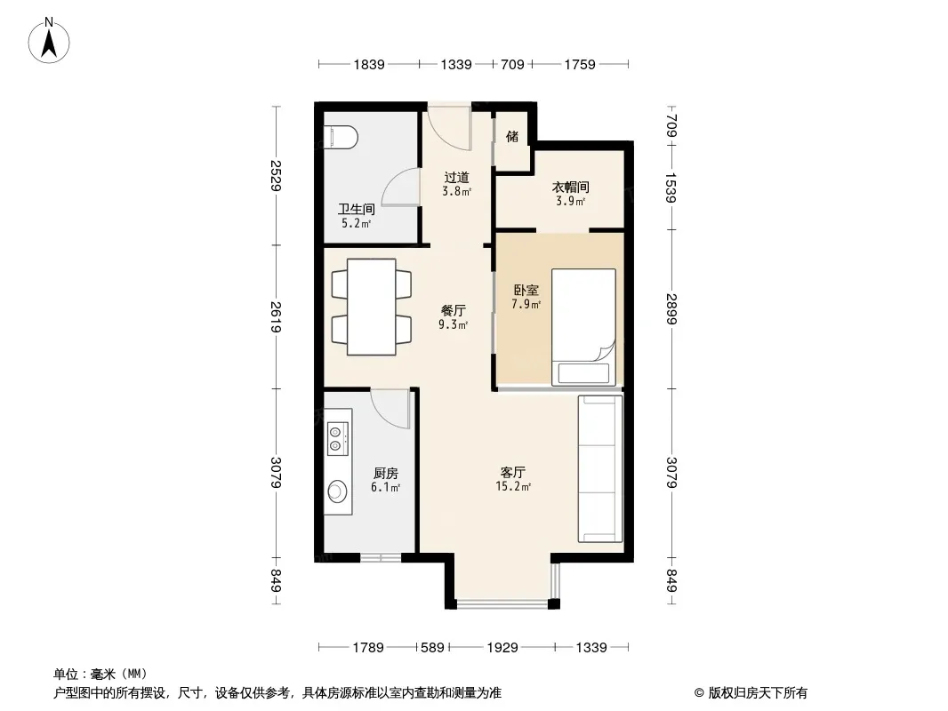 户型齐全,主打户型方正,独立衣帽间,明厨,客厅朝南一居