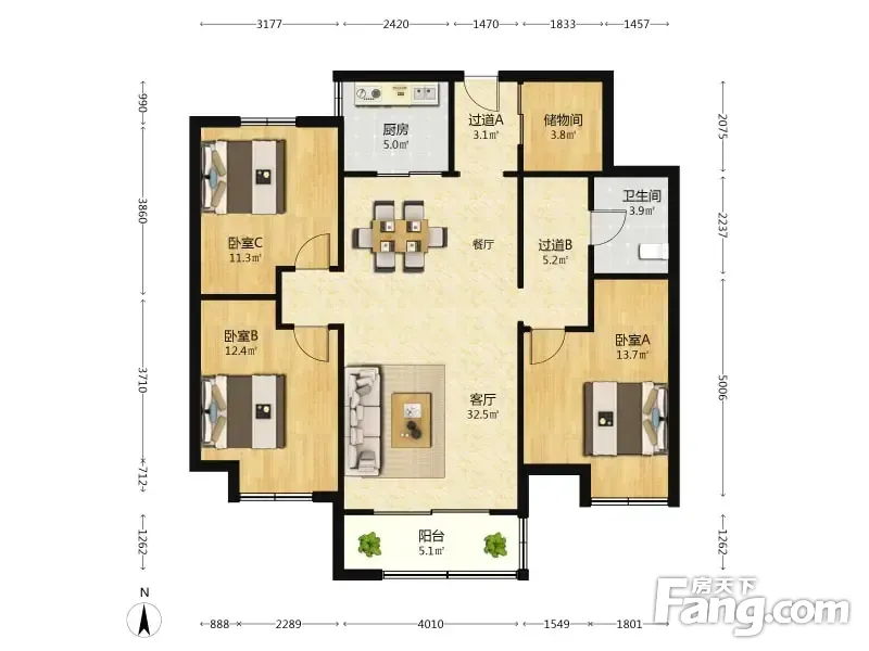 3室1厅