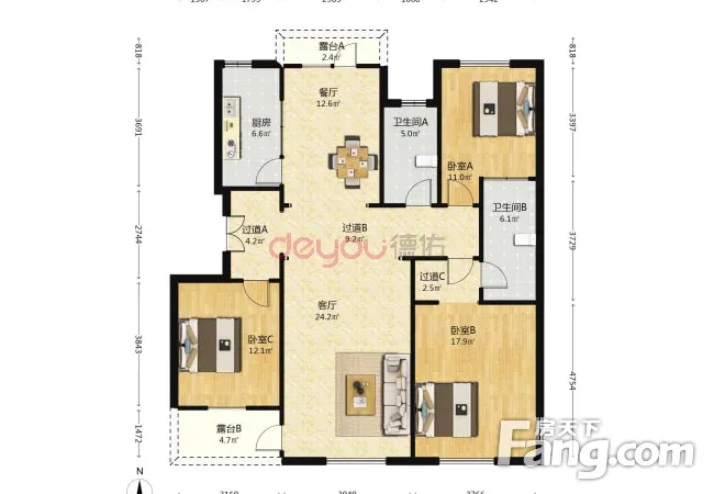 户型齐全,主打户型方正,双卧朝南,主卧朝南三居