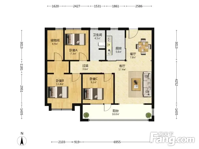 户型齐全,主打南北通透,全明格局三居