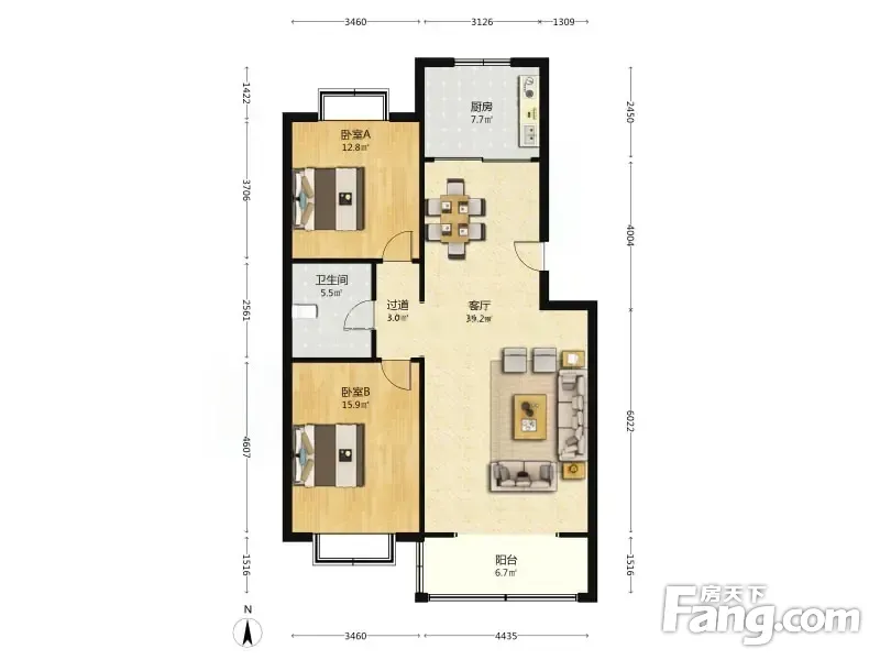 户型齐全,主打户型方正,明厨,主卧朝南二居