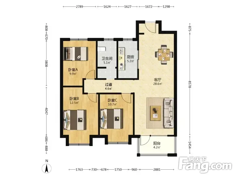 户型齐全,主打南北通透,户型方正三居