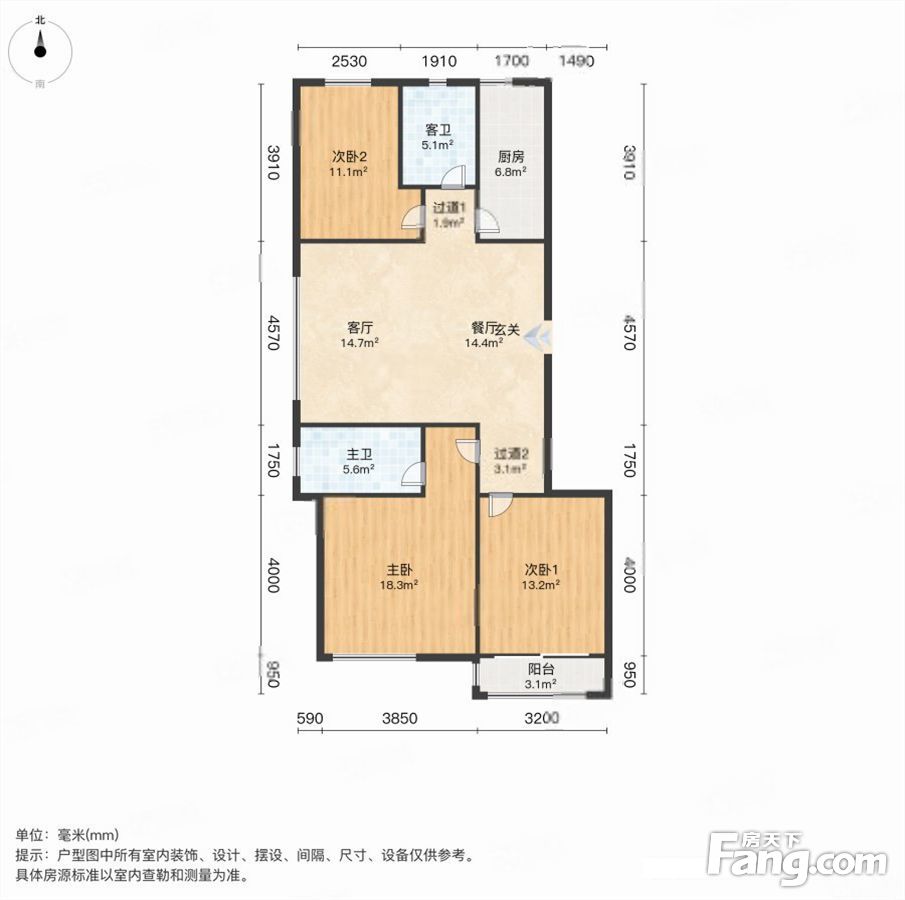 户型齐全,主打南北通透,客厅朝南三居
