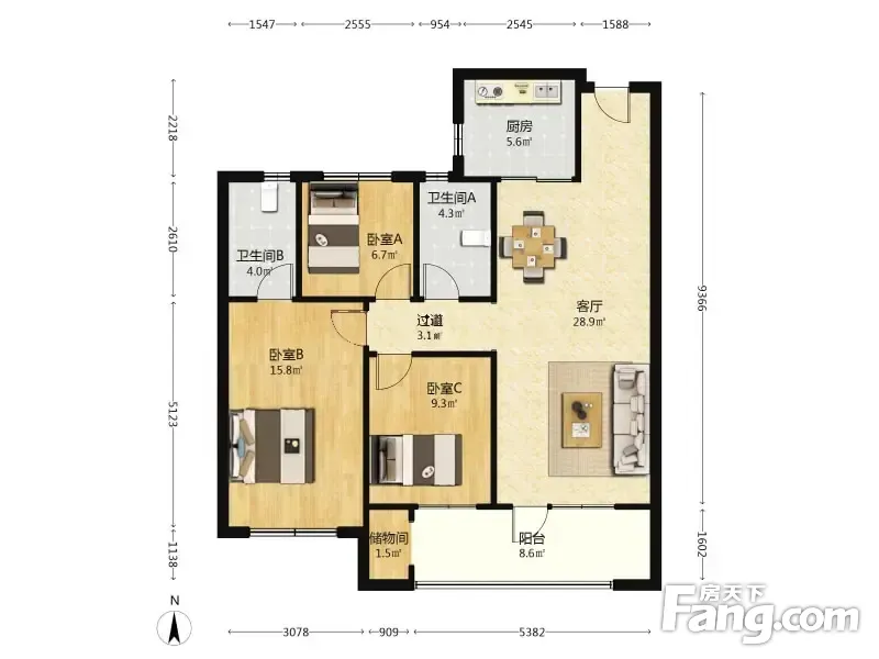 户型齐全,主打南北通透,采光充足三居