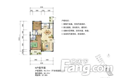 户型齐全,主打南北通透,全明格局,户型方正三居