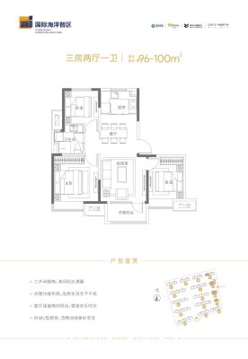 国际海洋智区·云颂户型主要有94平-128平的全明格局,三开间朝南的三居 、96平-96平的户型方正,卧室朝南的二居 、140平-143平的户型方正,主卧带卫,开放厨房的四居 。