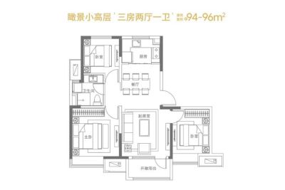 户型齐全,主打全明格局,三开间朝南三居